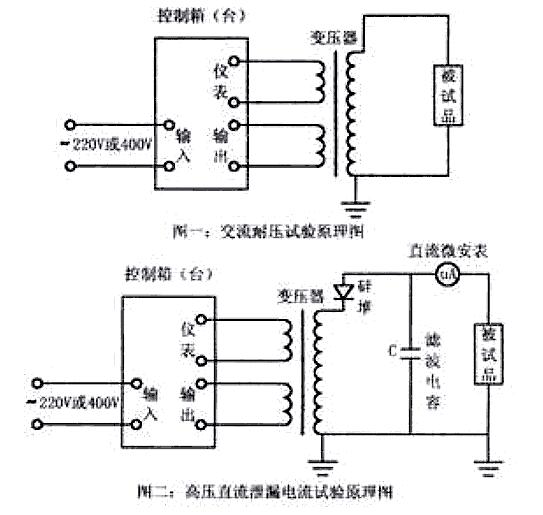 5、試驗(yàn)中,如果試品短路或故障擊穿,控制箱中的過(guò)流繼電器工作,此時(shí),將調(diào)壓器回至零位,并切斷電源后,方可將試品取出。